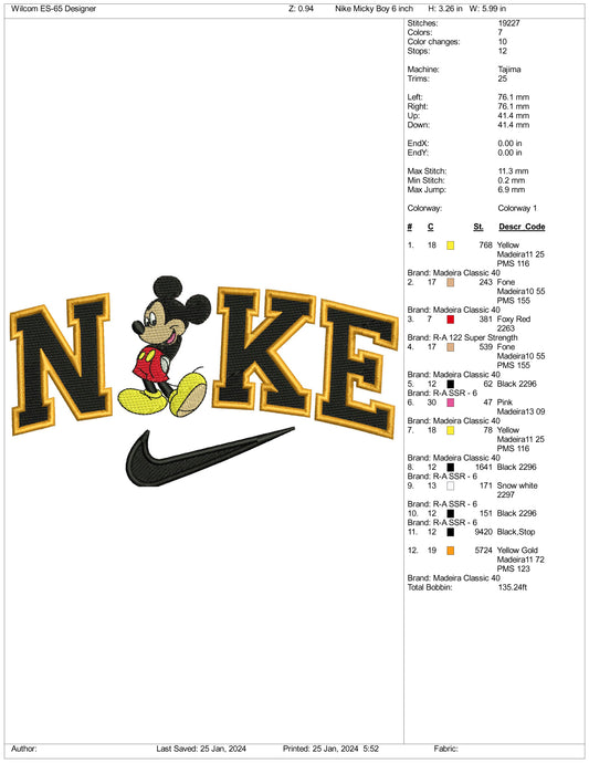 Nike Mickey Mouse v2 Embroidery Design Files - 3 Size's