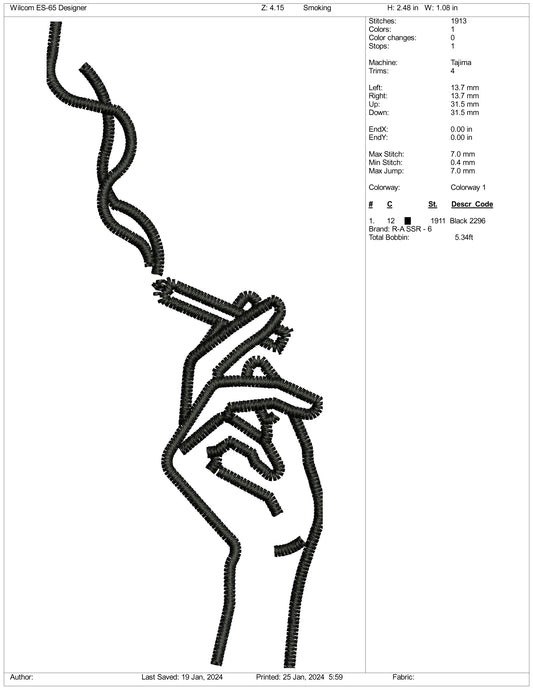 Cigarette Hand Embroidery Design Files - 3 Size's
