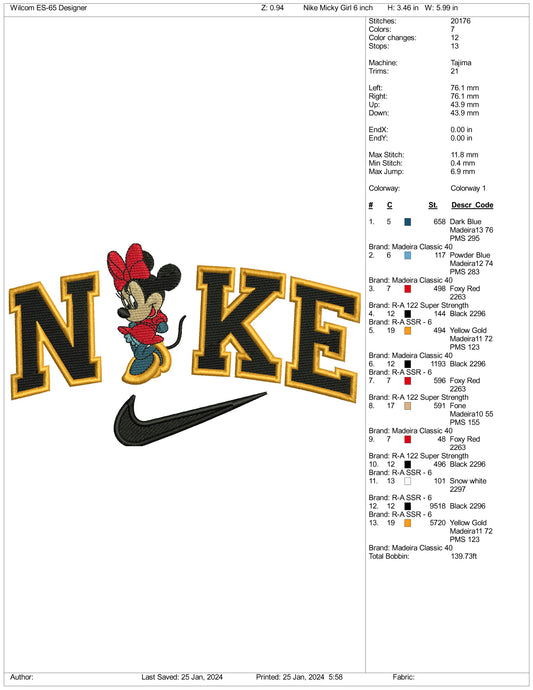 Nike Mickey Minnie Embroidery Design Files - 3 Size's