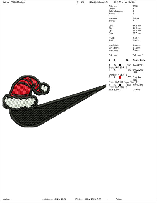 Santa Nike Embroidery Design Files - 3 Size'sRegular price $6.99 USDRegular priceUnit price / per
