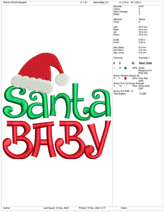 Santa Baby Embroidery Design Files - 3 Size'sRegular price $6.99 USDRegular priceUnit price / per-