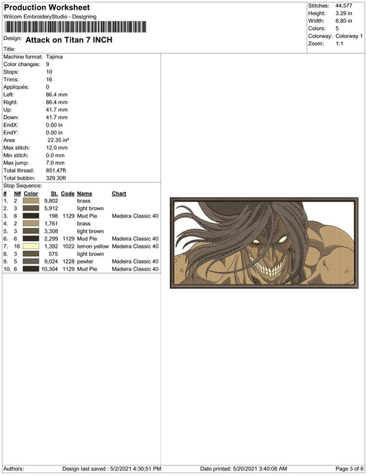 Eren Yeager v11 Embroidery Design Files - 4 Size's