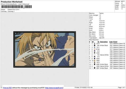 Edward Elric Embroidery Design Files - 4 Sizes
