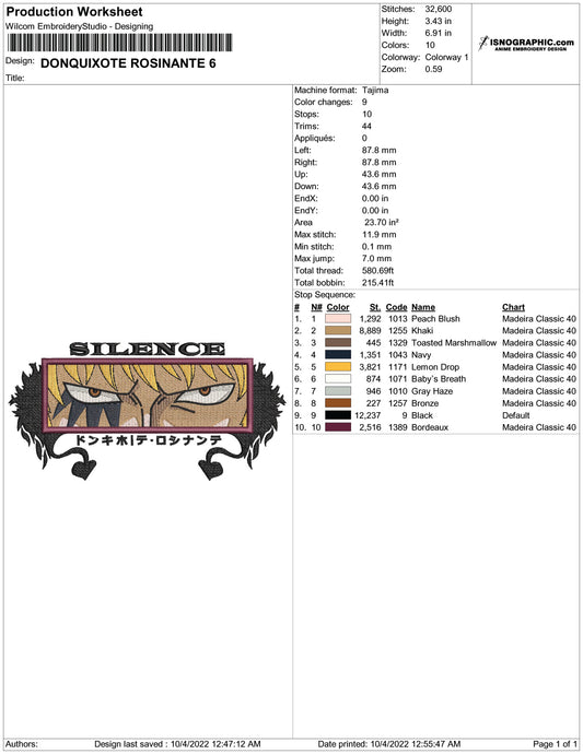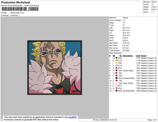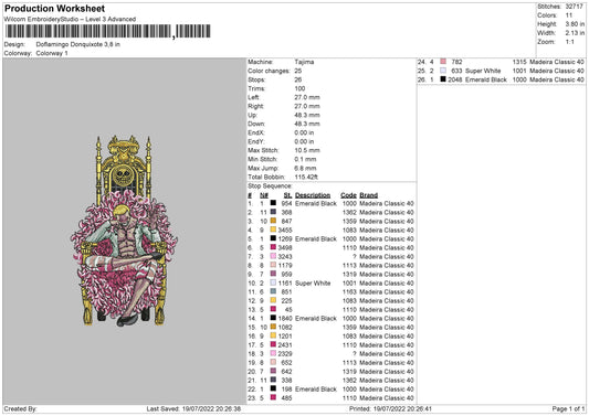 Donquixote Doflamingo v3 Embroidery Design Files - 4 Size's