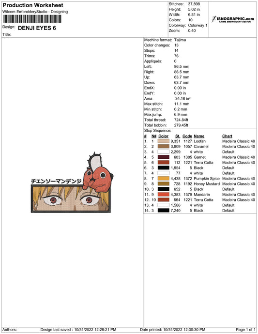 Denji Embroidery Design Files - 3 Size's