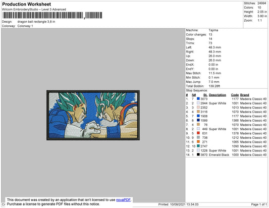 Dragon Ball Z Embroidery Design Files - 3 Size's