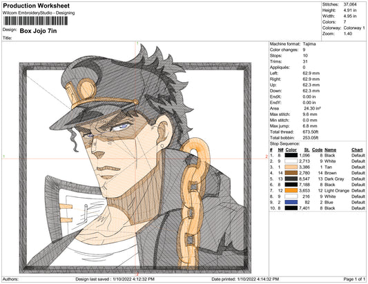 Jotaro Kujo v4 Embroidery Design Files - 3 Sizes