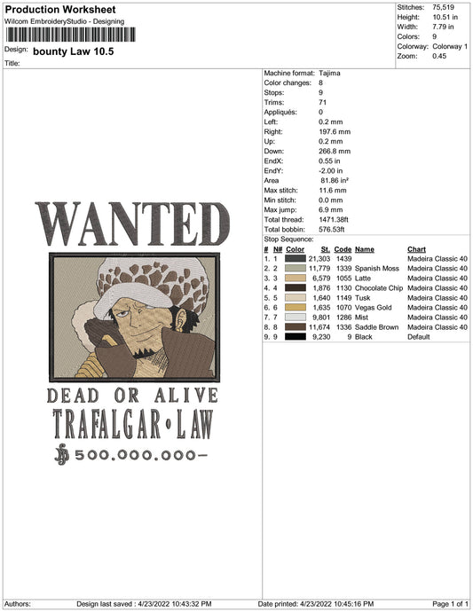Bounty Law Embroidery Design Files - 6 Size's