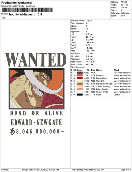 Bounty Whitebeard Embroidery Design Files - 6 Size's