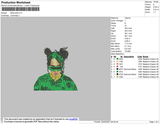 Billie Eilish Embroidery Design Files - 5 Sizes