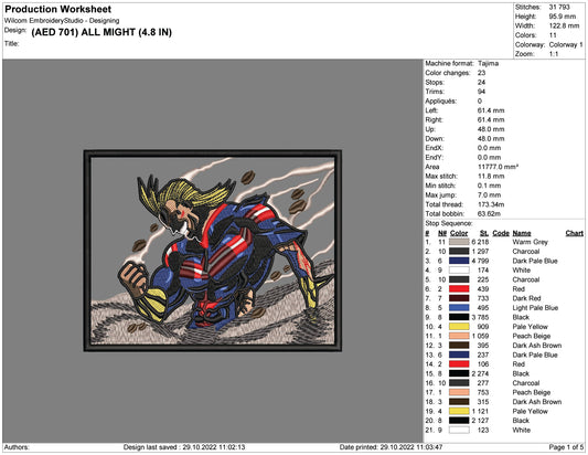 All Might Embroidery Design Files - 4 Size's