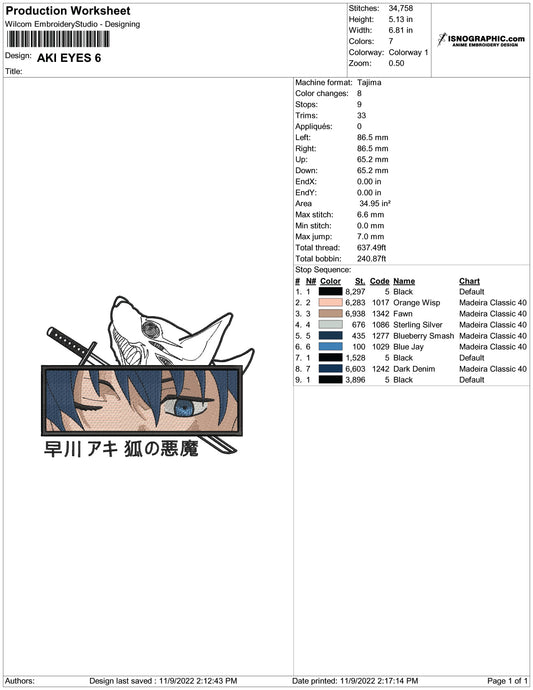 Aki Hayakawa v2 Embroidery Design Files - 3 Size's