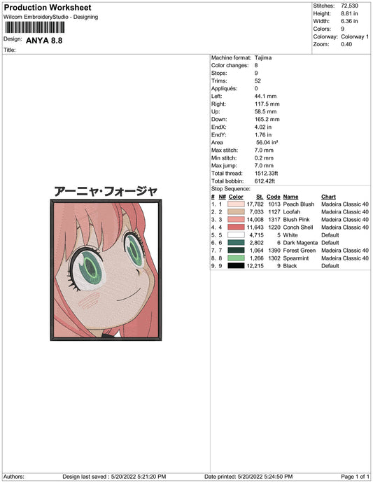 Anya Forger v4 Embroidery Design Files - 3 Size's