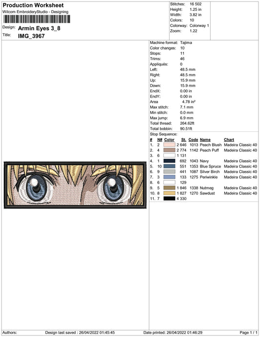 Armin Arlert v3 Embroidery Design Files - 4 Size's