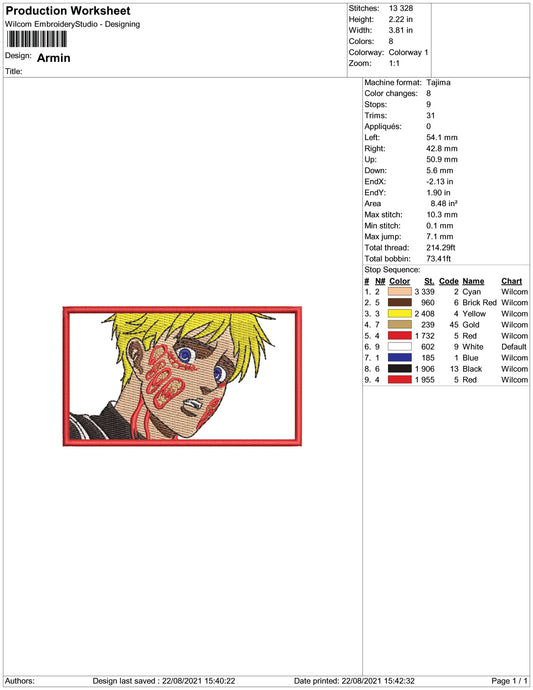 Armin Arlert v2 Embroidery Design Files - 3 Size's