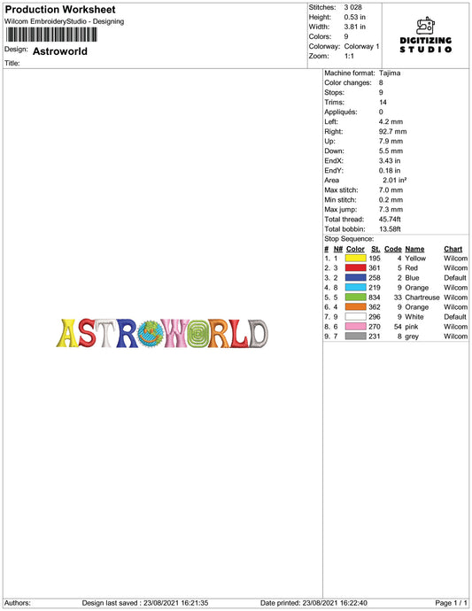 Astro World Embroidery Design Files - 4 Size's