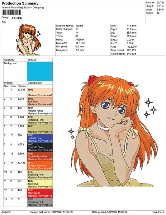 Asuka Langley Soryu Embroidery Design Files - 5 Size's