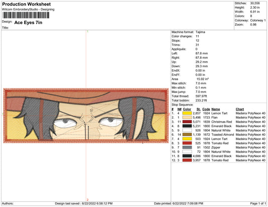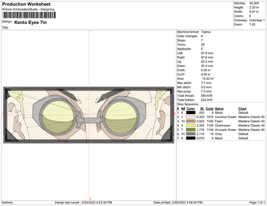 Kento Nanami Eyes Embroidery Design Files - 3 Size's