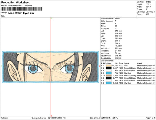 Nico Robin Eyes Embroidery Design Files - 3 Size's