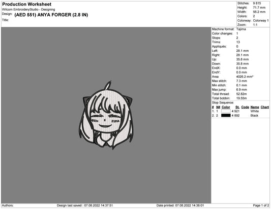 Anya Forger v2 Embroidery Design Files - 5 Size's