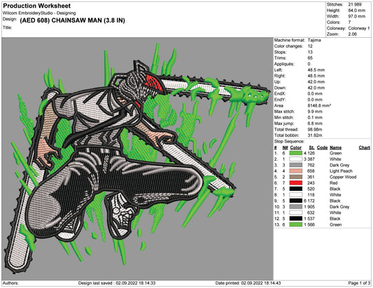 Chainsaw Man Embroidery Design Files - 4 Size's