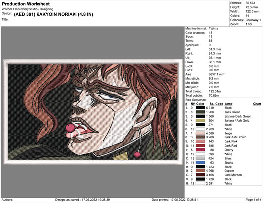 Noriaki Kakyoin Embroidery Design Files - 4 Size's