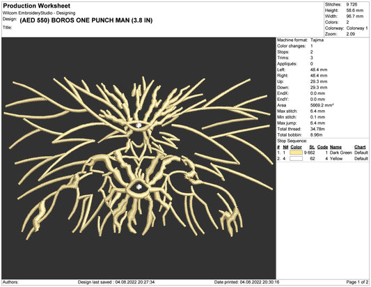 Boros One Punch Man Embroidery Design Files - 8 Size's