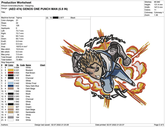 Genos One Punch Man Embroidery Design Files - 4 Size's