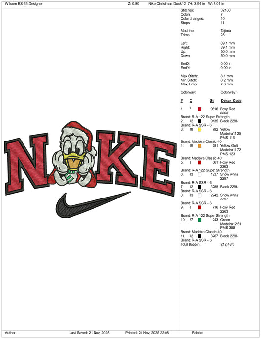 NIke Donald Duck v8 Embroidery Design Files - 3 Size's
