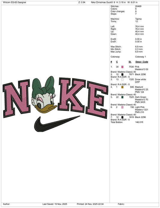NIke Daisy Duck v5 Embroidery Design Files - 3 Sizes