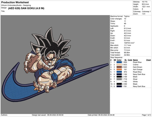 Goku Swoosh v2 Embroidery Design Files - 5 Size's