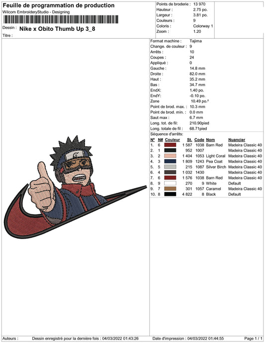 Obito Thumb Up Swoosh Embroidery Design Files - 3 Size'sRegular price $6.99 USDRegular priceUnit price / per-