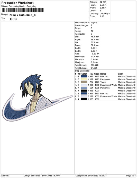 Sasuke Uchiha Swoosh v9 Embroidery Design Files - 4 Size'sRegular price $6.99 USDRegular priceUnit price / per-