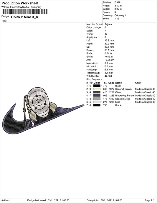Uchiha Obito Swoosh v9 Embroidery Design Files - 6 Size'sRegular price $6.99 USDRegular priceUnit price / per-
