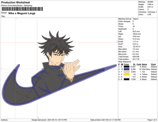 Megumi Fushiguro Swoosh Embroidery Design Files - 3 Size'sRegular price $6.99 USDRegular priceUnit price / per-