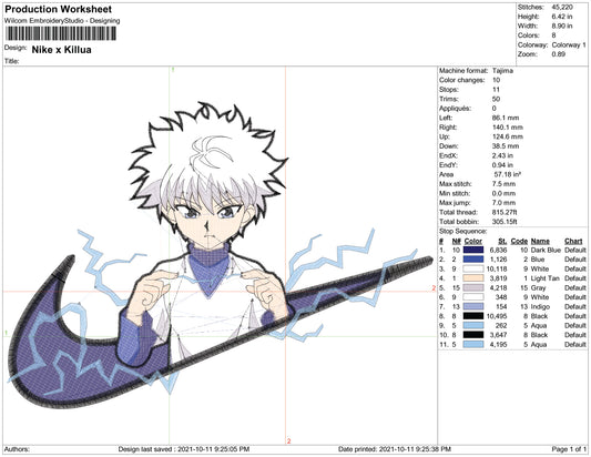 Killua Zoldyck Swoosh v7 Embroidery Design Files - 3 Size'sRegular price $6.99 USDRegular priceUnit price / per-