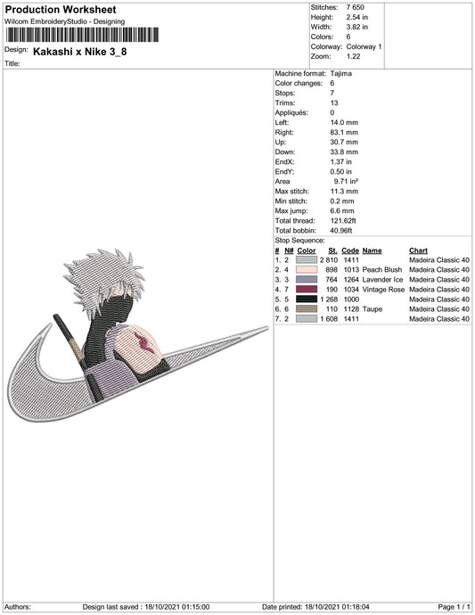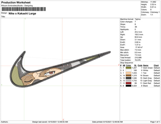 Kakashi Hatake Swoosh v5 Embroidery Design Files - 3 Size'sRegular price $6.99 USDRegular priceUnit price / per-