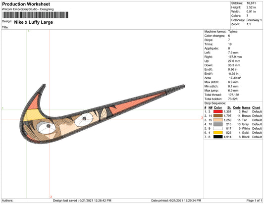 Monkey D Luffy Swoosh v9 Embroidery Design Files - 3 Size'sRegular price $6.99 USDRegular priceUnit price / per-