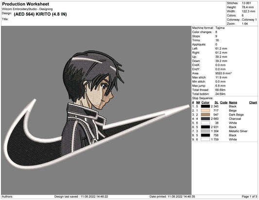 Kazuto Kirigaya Swoosh Embroidery Design Files - 4 Size's