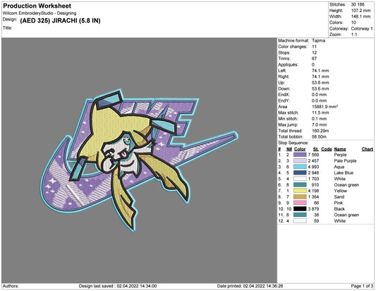 Jirachi Swoosh Embroidery Design Files - 4 Size's