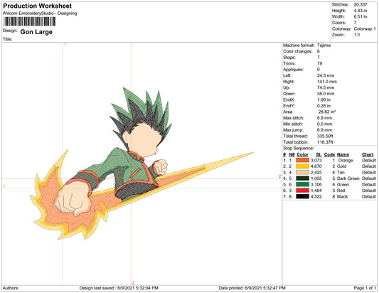 Gon Freecss Swoosh v4 Embroidery Design Files - 3 Size's