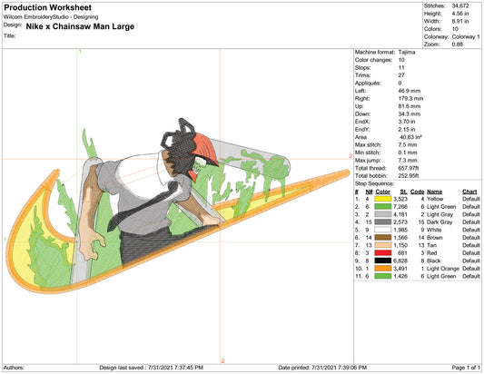 Chainsaw Man Swoosh Embroidery Design Files - 3 Size's