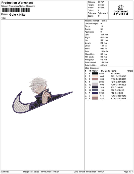 Satoru Gojo Swoosh v5 Embroidery Design Files - 4 Size's