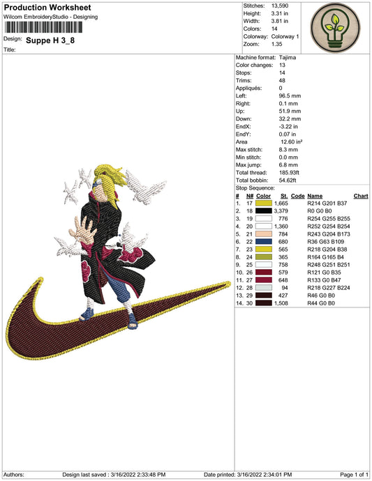 Deidara Uchiha Swoosh v2 Embroidery Design Files - 4 Size's