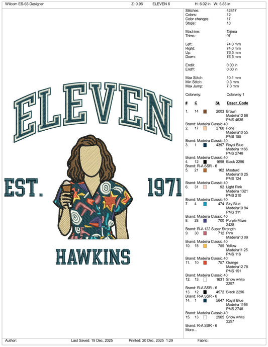 Eleven Est 1971 Hawkins Embroidery Design Files - 5 Size's