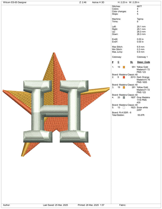 Archivos de diseño de bordado 3D del logotipo de la H de los Houston Astros (talla única)