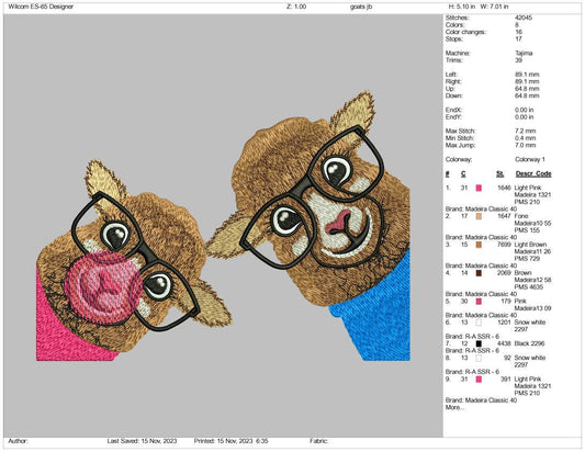 Archivos de diseño de bordado de 2 cabras - 3 tamaños