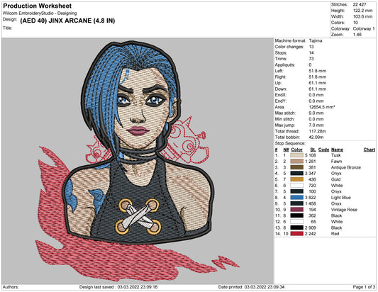 Jinx Arcane Embroidery Design Files - 4 Size's