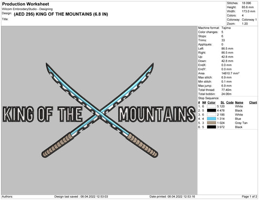 King of The Mountains Embroidery Design Files - 4 Size's