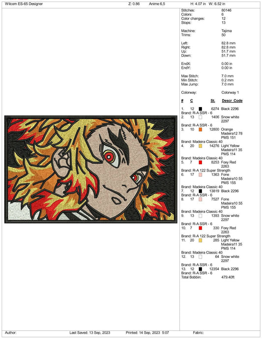 Kyojuro Rengoku v2 Embroidery Design Files - 4 Size's